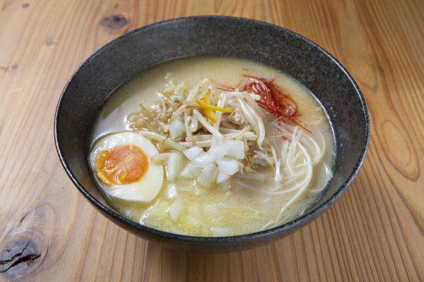 トッピングのシャキシャキ生玉ねぎがスープの優しさを引き立てます。