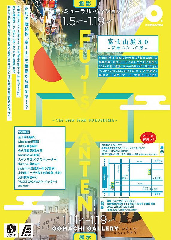 『富士山展3.0 』サテライト展を開催中!福島ミューラルヴィジョン(投影1/5~1/19) OOMACHI GALLERY(展示1/11~1/19)