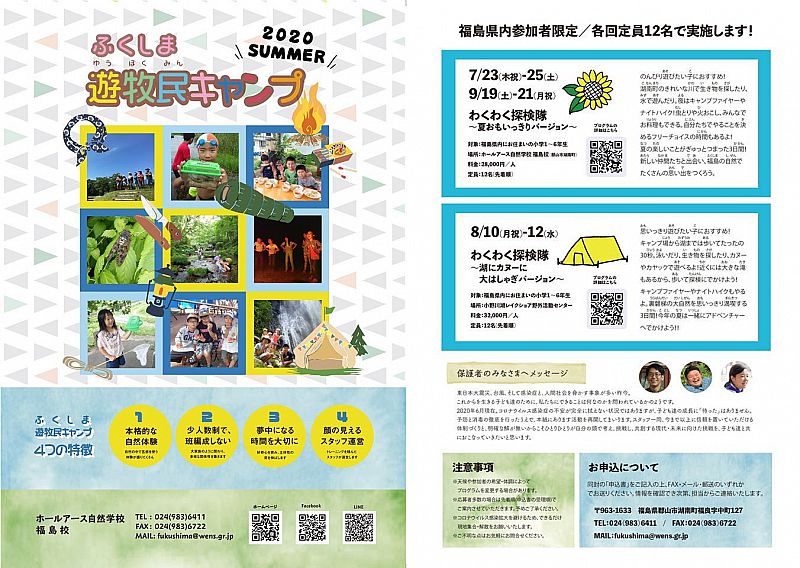 ホールアース自然学校福島校からお知らせです。今夏の子どもキャンプ 7月・9月はまだ余裕があります。ご参加をご検討の方はぜひお早めにお申し込みください