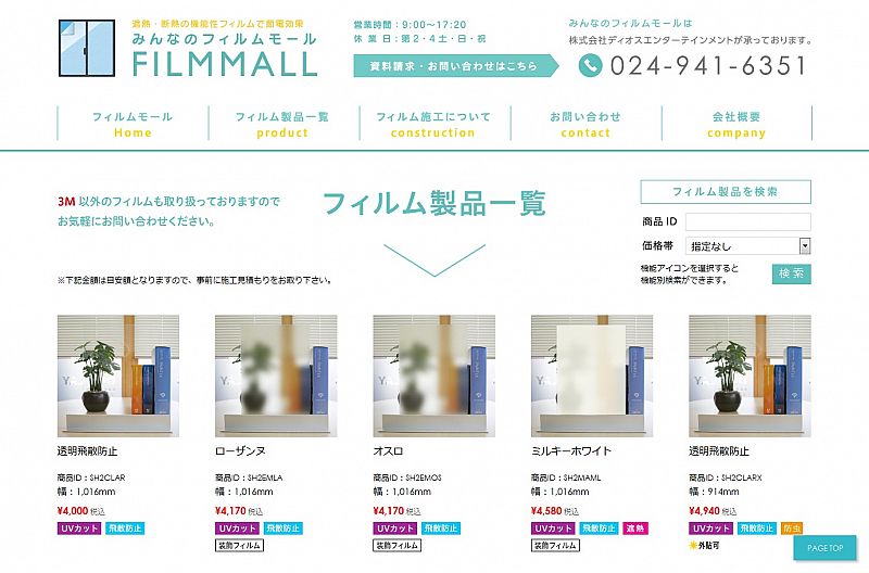 機能性ガラスフィルム販売施工サイト【みんなのフィルムモール】をオープン致しました。