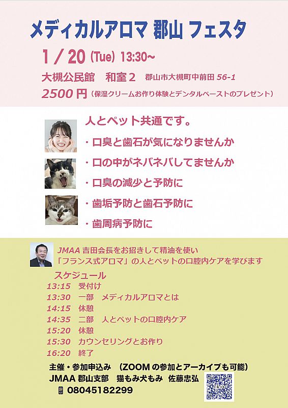 人とペットの口腔ケアを学ぶ「メディカルアロマ郡山フェスタ」1/20開催