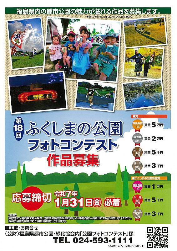 > ニュース一覧 > 第18回「ふくしまの公園フォトコンテスト」の作品募集 応募締切:令和7年1月31日(ふくしまニュースWeb )- 2024.05.28(火) 07:30