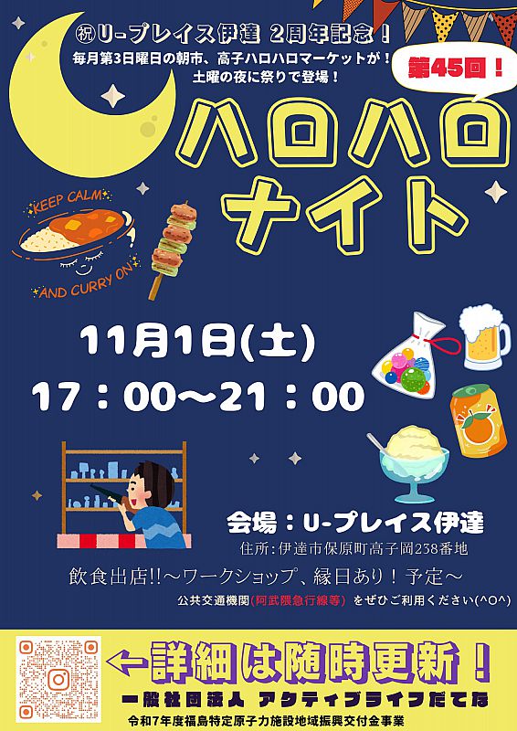 > ニュース一覧 > みんな集まれ~♡ 11月1日「ハロハロナイト」Uープレイス伊達2周年記念開催(ふくしまニュースWeb )- 2025.10.04(土) 07:30