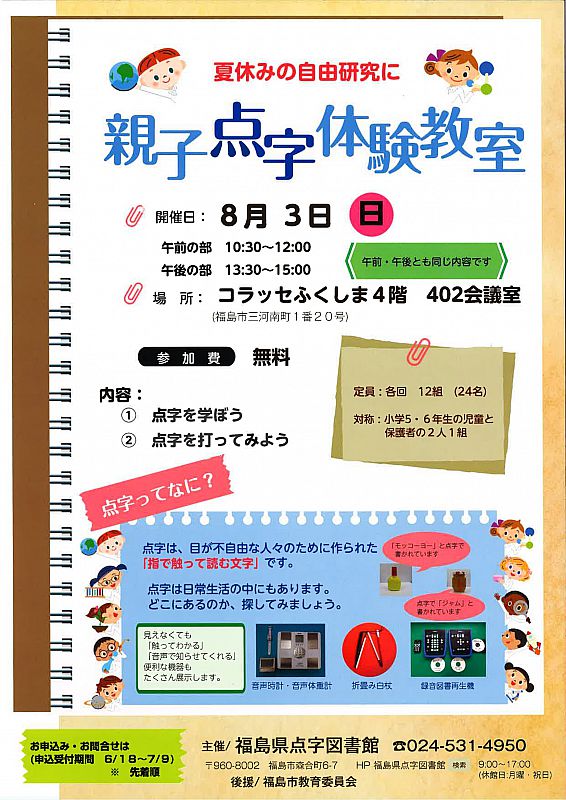 福島県点字図書館 養成講座受講生募集 音訳・点訳ボランティア