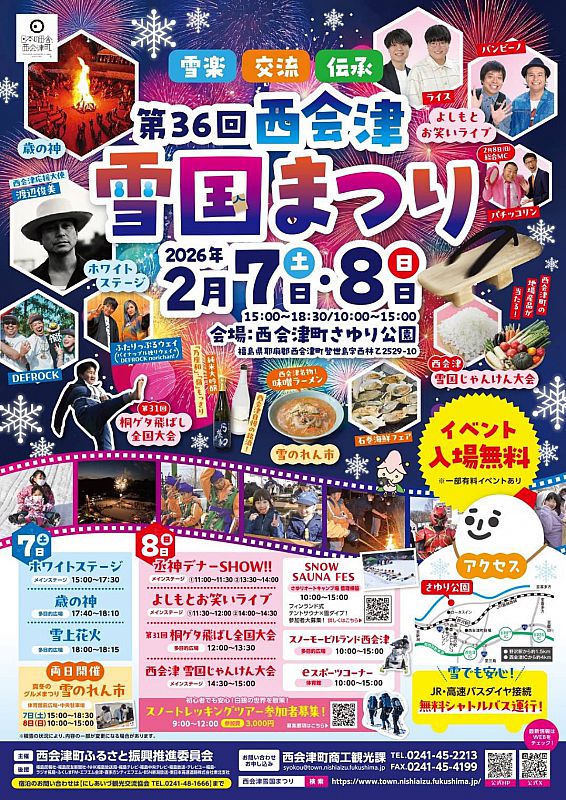TEL 0246-73-2525(開館時間 通常期⇒9:00~17:30 冬季12/1~3/20⇒9:00~17:00)