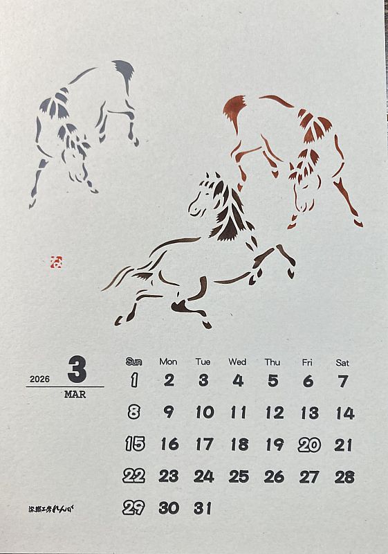 気になるコラボカレンダーの絵柄は、2月はアネモネ、3月は躍動する3頭の馬に、春の躍動を感じる絵柄となっています。ぜひ、お店でご覧になってはいかがでしょう。