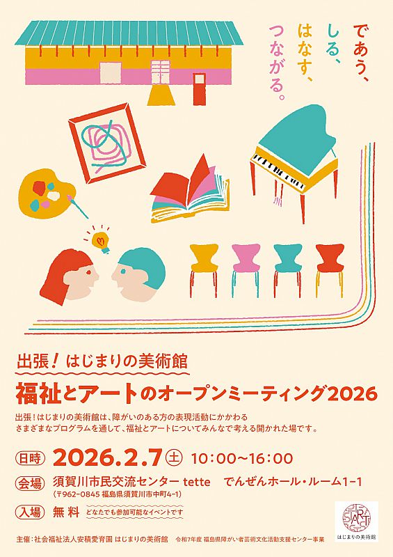 2026年2月7日(土)、須賀川市民交流センターtetteにて、「出張!はじまりの美術館 ~福祉とアートのオープンミーティング2026~」を開催します。