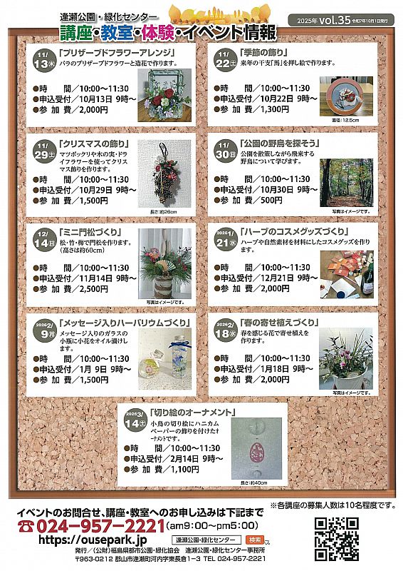 【逢瀬公園・緑化センター】2026年3月の講座・教室・体験プログラムのお知らせです‼