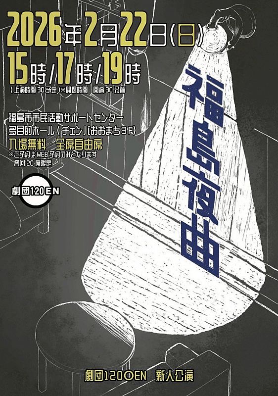 > ニュース一覧 > 【福島市】劇団120◯EN 新人公演『福島夜曲』2/22開催 ご予約受付中(ふくしまニュースWeb )- 2026.02.13(金) 13:00
