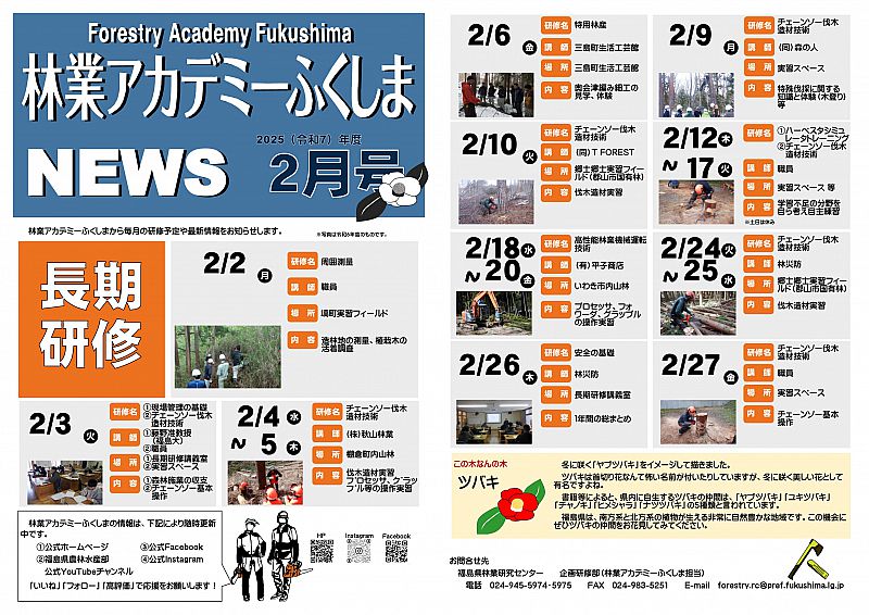 林業アカデミーふくしまでは、研修計画やイベント情報をお知らせする「林業アカデミーふくしまNEWS」を発行しています。