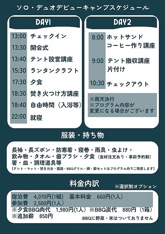 【おとなのソロ・デュオ デビューキャンプinフォレストパークあだたら】