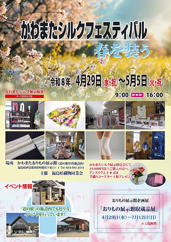 【4/29~5/5】道の駅かわまたで「かわまたシルクフェスティバル」開催 川俣シルクの展示販売