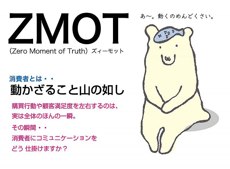 ZMOTは、Webでの生活者との接触でどのような情報と出会えれば新しい購買行動へつなげられるかという新しいマーケテイングのあり方を示唆したWeb活用モデルと言えます。