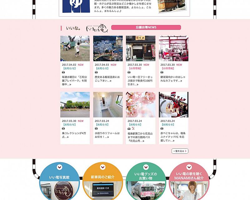 福島市の北部を走るいい電。福島駅と飯坂温泉を結び、普段は沿線の人々の足として通勤・通学に活躍しています。その飯坂電車、通称いい電のホームページが4月1日リニューアルオープンいたしました!