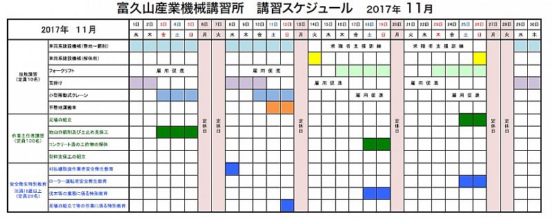 11月の富久山産業機械講習所のスケジュールがUPされました♬