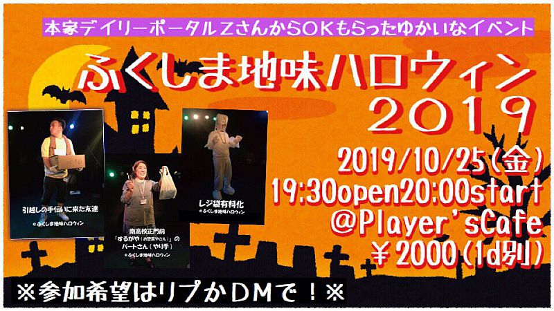 参加者募集!2019年10月25日福島市で「ふくしま地味ハロウィン」を開催します。