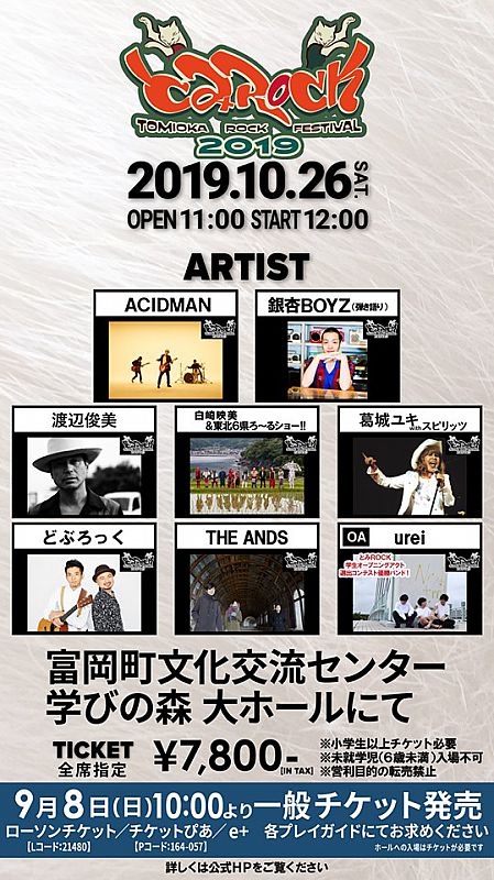 [開催断念のお知らせ]10月26 日(土)、『とみROCK2019』を福島県富岡町「富岡町文化交流センター学びの森」で開催します