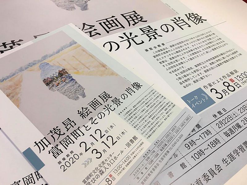 富岡町学びの森入り口ホール・図書館で、加茂昂絵画展「富岡町とその光の肖像」開催中(~3/12まで)