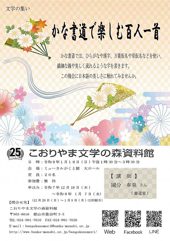 こおりやま文学の森資料館「かな書道で楽しむ百人一首」12/18申込開始