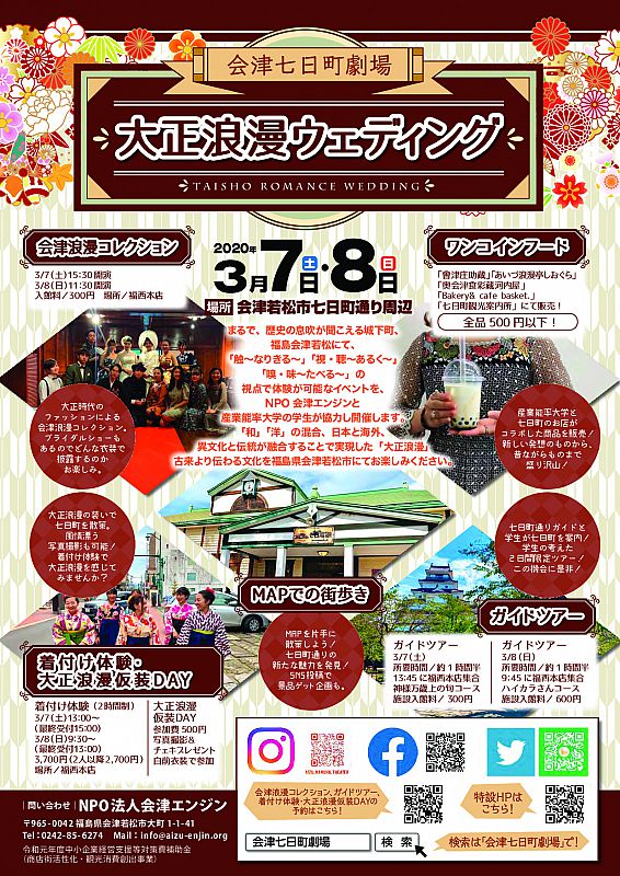 〔開催中止のお知らせ〕2020年3月7日・8日、会津若松市七日町通り周辺で、「会津七日町劇場~大正浪漫ウエディング~」を開催します