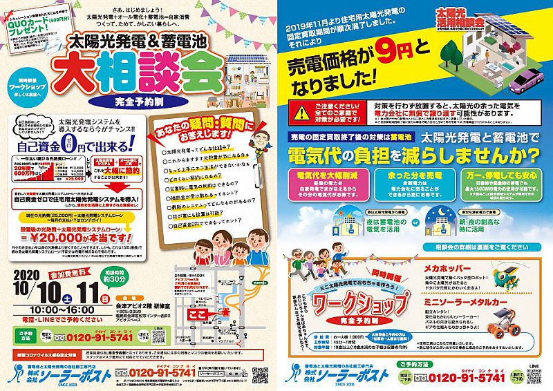 > ニュース一覧 > 【会津若松市】太陽光発電&蓄電池大相談会(ソーラーポスト)- 2020.09.24(木) 10:31