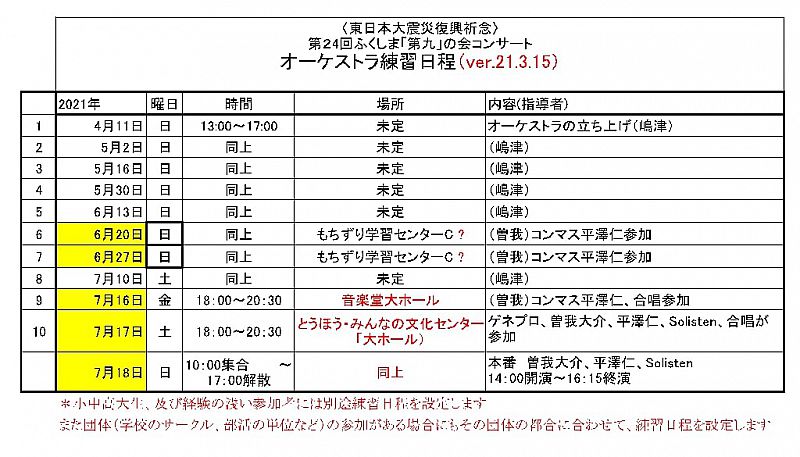 改めて日程調整を行い令和3(2021)年7月18日(日)、東日本大震災復興支援 第24回ふくしま「第九」の会コンサートを開催する運びとなりました。