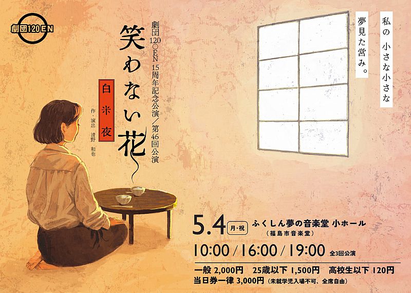 【劇団120◯EN】15周年記念公演「笑わない花 -白米夜-」5/4開催 人気作が全編改訂で蘇る!