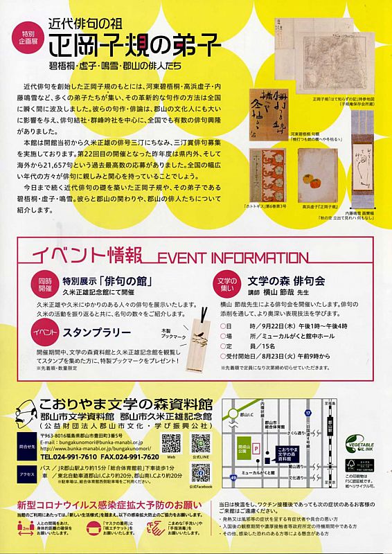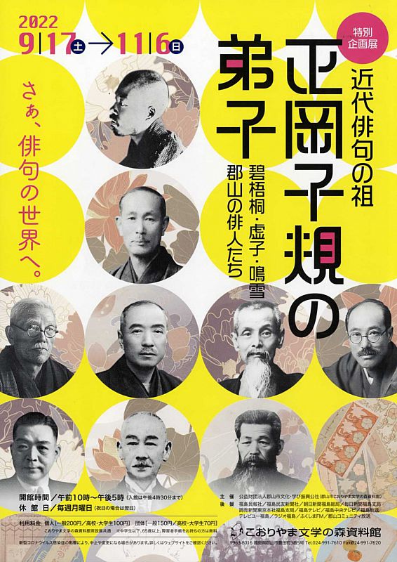 > ニュース一覧 > 特別企画展「近代俳句の祖 正岡子規の弟子」開催中【こおりやま文学の森資料館】(ふくしまニュースWeb )- 2022.09.22(木) 07:30