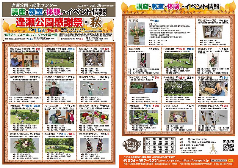 > ニュース一覧 > 逢瀬公園(郡山市)12月開催【講座・教室・体験】申し込み受け付け中‼(ふくしまニュースWeb )- 2022.11.11(金) 07:30