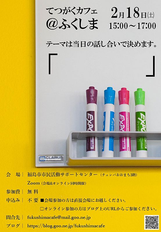 オンライン参加の際は、てつがくカフェ@ふくしまのブログに掲載されたZoomのURLからご参加ください。