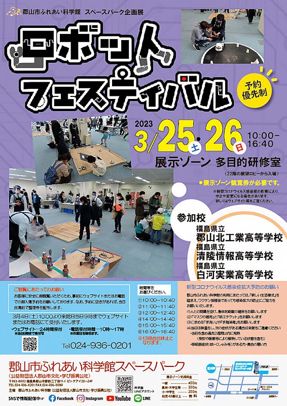 > ニュース一覧 > 3/25~3/26 スペースパーク企画展「ロボットフェスティバル」開催!【要観覧券】(ふくしまニュースWeb )- 2023.03.14(火) 07:30
