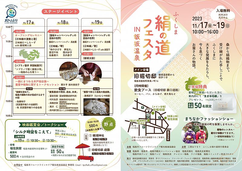 2023年11月17日(金)~19日(日)、「ふくしま絹の道フェスタin飯坂温泉」を開催します。