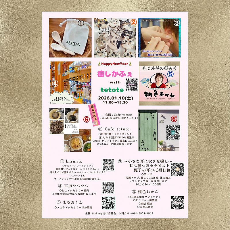 1月10日、癒しかふぇwith tetoteを開催します!【会場Café tetote(福島市)】