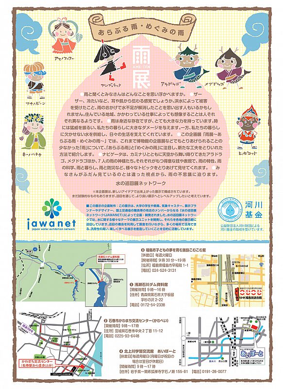 2024年9月5日(木)~15日(日)に、福島市のこむこむ館で、企画展「あらぶる雨・めぐみの雨 雨展」を開催します。