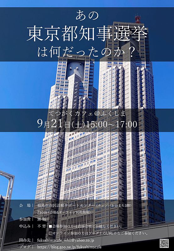 9月21日「てつがくカフェ@ふくしま」開催 テーマ:あの東京都知事選挙は何だったのか?