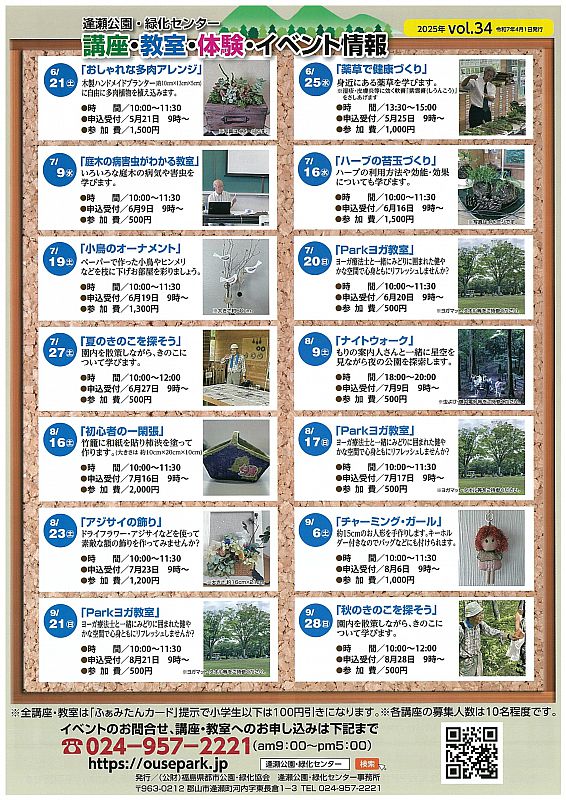 申込受付/逢瀬公園・緑化センター事務所024-957-2221(9:00~17:00)