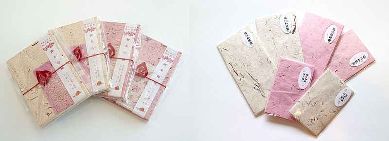 「福咲和紙」は、縁起物の桃の枝と幹を使って漉いた和紙です。自然の風合いを生かした福咲和紙の商品は、しおりのほかにも御朱印帳やポチ袋、コースターなどがあります。