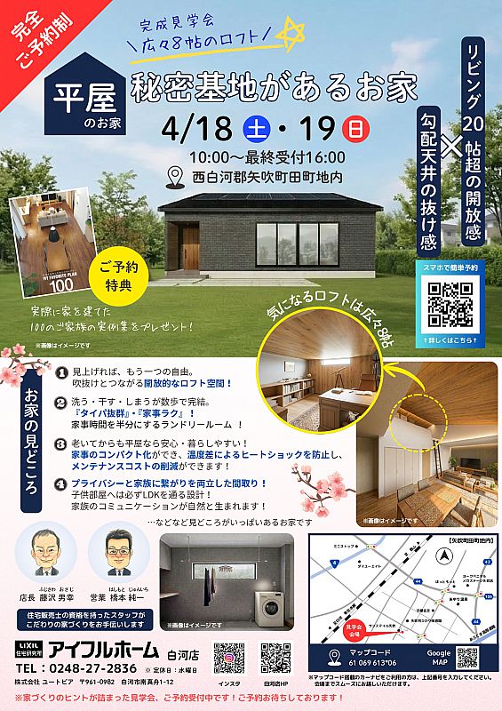 【4/18・19開催】アイフルホーム白河店「秘密基地があるお家」完成現場見学会 ご予約好評受付中