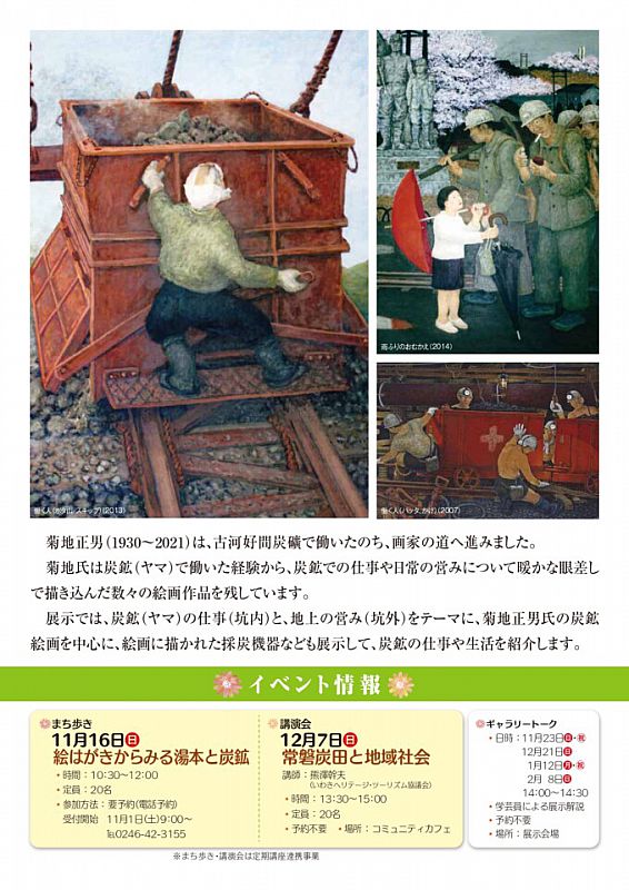 > ニュース一覧 > 「描かれた炭鉱(ヤマ)-菊地正男絵画展-」開催中‼【いわき市石炭・化石館ほるる】(ふくしまニュースWeb )- 2026.01.03(土) 07:30
