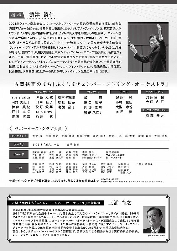 > ニュース一覧 > 古関裕而のまち「ふくしまチェンバー・ストリング・オーケストラ」コンサート2月公演(ふくしまニュースWeb )- 2025.12.11(木) 07:30