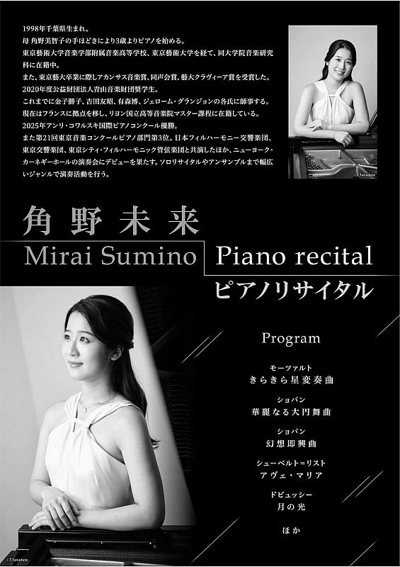 > ニュース一覧 > 【ふくしん夢の音楽堂】「角野未来ピアノリサイタル」2/8開催 チケット好評発売中(ふくしまニュースWeb )- 2025.12.10(水) 07:30
