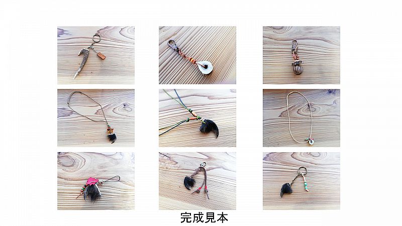 ニホンジカの角やツキノワグマの爪からネックレス、ストラップ、キーホルダーなどのオリジナルの作品を製作します。