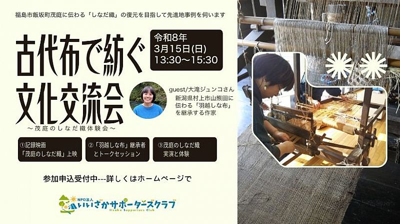 > ニュース一覧 > 2026年3月15日(日)『古代布で紡ぐ文化交流会』を開催します!【しなだ織】(ふくしまニュースWeb )- 2026.03.04(水) 12:00