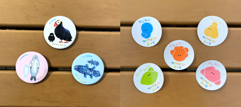 先着100名様に記念グッズとして、アクアマリンえっぐで使用されているイラストの缶バッジをプレゼントします。