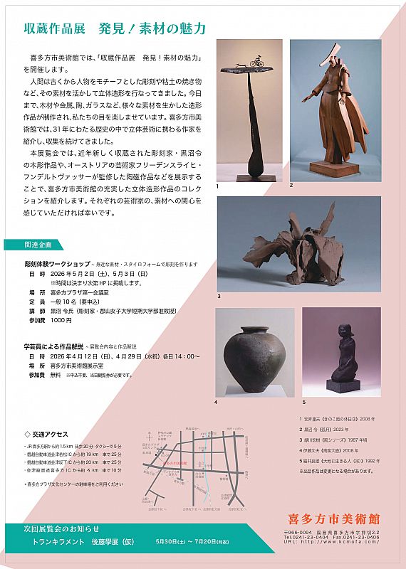 > ニュース一覧 > 喜多方市美術館「収蔵作品展 発見!素材の魅力」開催中 立体造形作品のコレクションを紹介(ふくしまニュースWeb )- 2026.04.16(木) 12:30