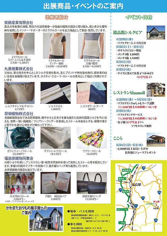 【4/29~5/5】道の駅かわまたで「かわまたシルクフェスティバル」開催 川俣シルクの展示販売