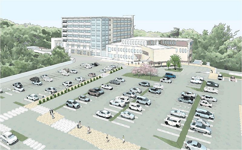 新施設は総事業費25億4700万円を見込み、RC造地下1階地上3階建て延べ6680m2の規模で建設する。「地域に開かれた病院」として交流機能も併設、外来機能や中央検査室、リハビリテーション科、地域医療連携室、化学療法室などを設けるほか、災害時には会議室での緊急的な患者受け入れも想定した施設整備も行う。また現在130台の駐車場を拡張し210台の収容スペースを確保する方針。