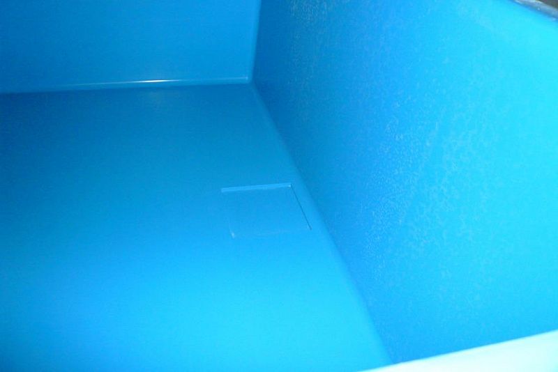 このたび、食品加工現場で役立つ水槽を発売いたしました。製品の特徴として水槽下部にパレット土台が付いており、ホークリフトでの運搬が可能となります。サイズは、2040×1840×650mmですが、軽トラックの荷台に載せることもできます。
